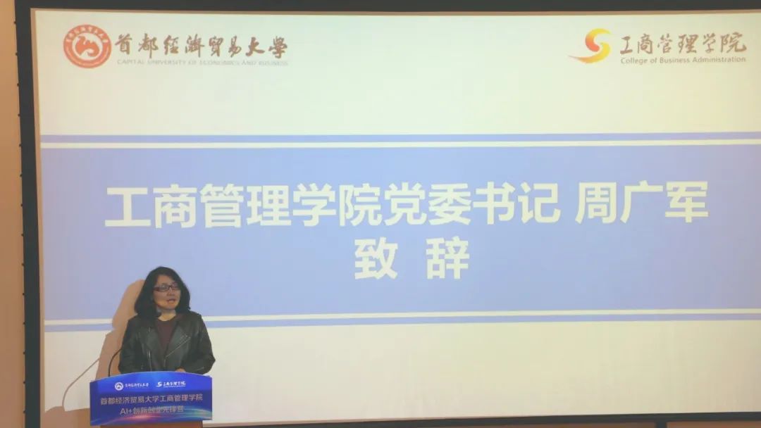 本次开营仪式得到了学校内外教育、科研、商业机构人士的大力支持。工商管理学院党委书记周广军为开营仪式致开幕词。周书记强调,在AI+的浪潮下,大家要保持强烈的好奇心与无畏的探索精神,在各类创新创业挑战中磨砺成长,将创新思维转化为实际的创业成果,为学校和社会争光添彩。