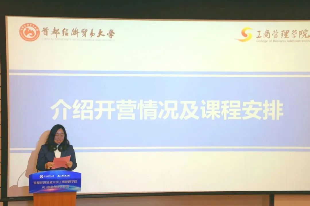 工商管理学院党委副书记陈蒲晶向大家介绍了“AI+创新创业先锋营”的开营情况、总体规划及课程安排。她指出,先锋营是工商管理学院在数字化转型浪潮中,积极响应国家创新驱动发展战略的重要举措,旨在培养既懂创业理论、拥有创业实践经验,又掌握AI核心技术的创新型、复合型商科人才。在这里,营员们将参加为期一学年的系统培训,最终获得高含金量的结营证书,为个人职业发展奠定坚实基础。