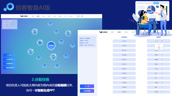 创客智盘提供AI线上版本,可进行任务分配、智能生成内容、选择PPT模板,智能生成PPT内容,由团队进行在线协同编辑等。具体在线操作步骤如下:
