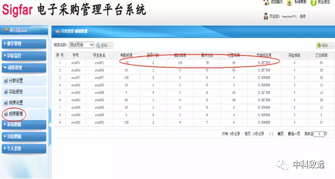 4、实训考勤成绩、实训操作成绩、采购利润率、实验报告。除实验报告需要学生提交报告,教师评分,其他自动生成。