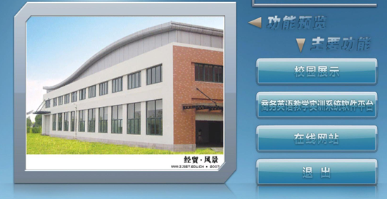 中科商务英语实训教学软件系统,主要是使用计算机对场景进行三维仿真模拟,镶入商务英语实训模块从而进行互动式展示教学实践的一套系统。系统镶入商务英语教学实践功能,在网络的支持下使用者可以在系统中进行商务英语口语实训,在系统中操作者可以实现对实训成果的录制,对实训成果的网络储存在线交互等功能,并且在网络版考试系统的支持下使用者可以实现在线无纸化网络考试。同时软件操作者可通过键盘、鼠标或游戏杆设备在实物场景的三维场景中身临其境般地进行鸟瞰、步行、飞行等全方位的任意交互漫游,同时,系统配以解说词和背景音乐,使软件操作者不用到达实地就可以进行参观场景。系统同时提供了丰富的系统设置功能,是一套技术先进与实用相结合的教学实践系统。
