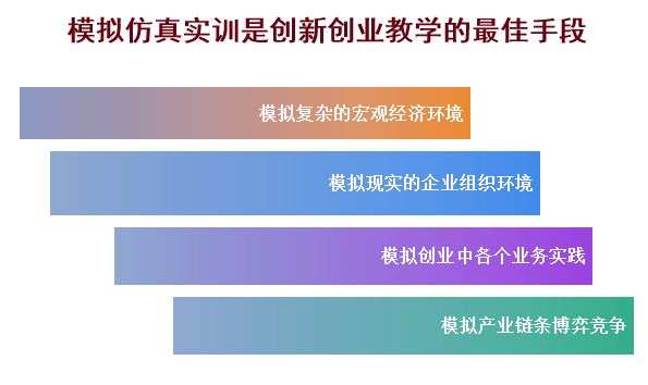 大学生创新创业实训云平台建立了新的创新创业教育理念,新的创新创业教育手段,形成完整的创业实训教学体系。得到清华大学、北京大学、北京航空航天大学、中央财经大学、北京师范大学、北京工商大学、黑龙江大学、武汉理工大学等高校创业教学和研究专家、教授的一致认可,正式向国内高校、培训机构进行产品推广。